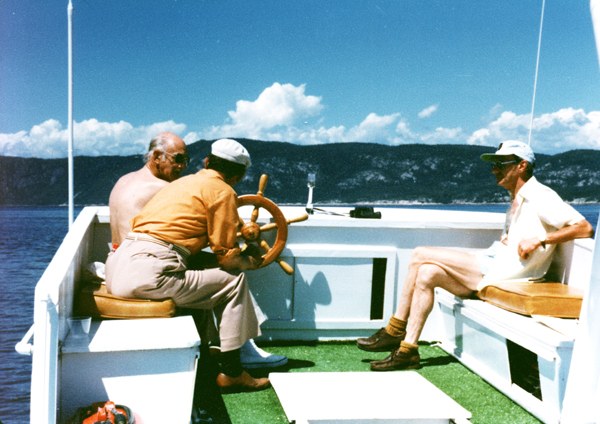 Crossing to Tadoussac on a pleasure boat, c. 1950.